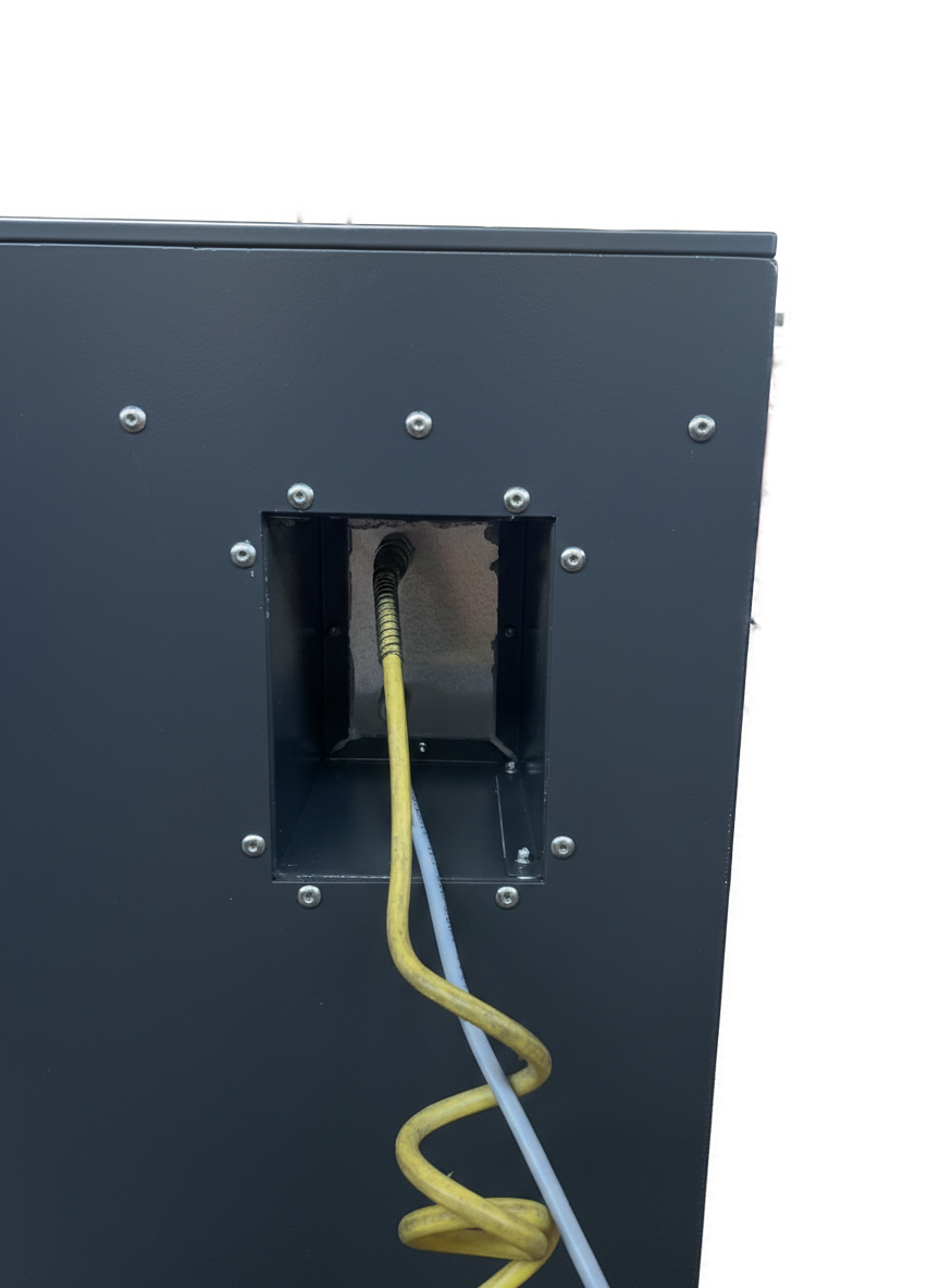 Silence et Encombrement Minimum: L’aspirateur est monté à l’intérieur de la structure monobloc, ce qui réduit le bruit et libère de l’espace dans l’atelier.